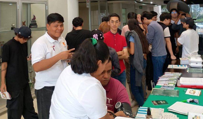 Mediante el programa PREVENIMSS, estudiantes de todas las carreras de la universidad tuvieron la oportunidad de participar en la jornada de salud, en la que se brindaron servicios de control de peso, talla, medición de glucosa y una campaña de vacunación contra el sarampión.