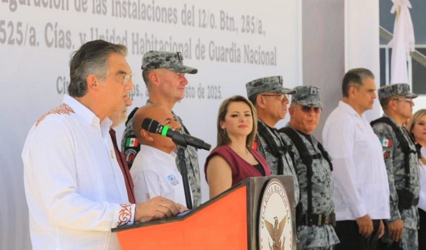 Ciudad Mier, Tamaulipas. – El gobernador Américo Villarreal Anaya, acompañado por el comandante de la Guardia Nacional, general Hernán Cortés Hernández, inauguró las instalaciones del 12° Batallón, tres compañías y una unidad habitacional de la Guardia Nacional en esta ciudad, a fin de fortalecer la capacidad institucional y reforzar la presencia de la corporación para brindar mayor seguridad a las y los tamaulipecos de esta región del estado.
