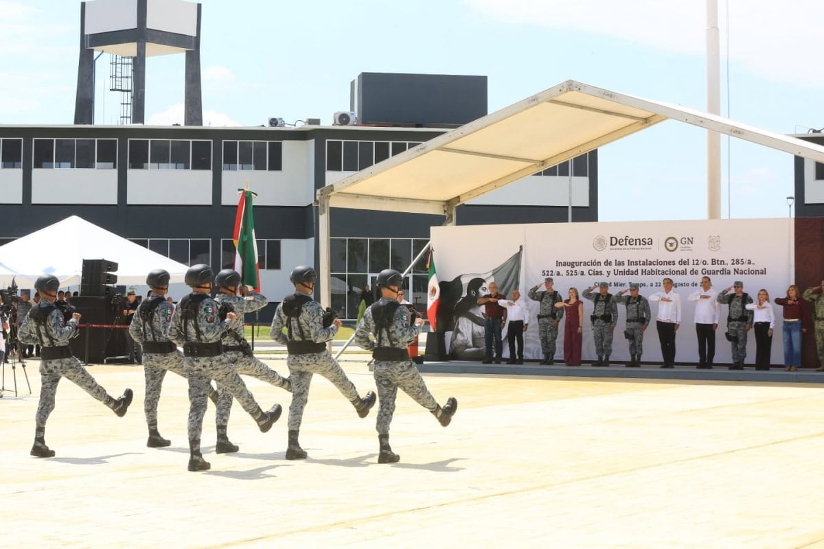 Ciudad Mier, Tamaulipas. – El gobernador Américo Villarreal Anaya, acompañado por el comandante de la Guardia Nacional, general Hernán Cortés Hernández, inauguró las instalaciones del 12° Batallón, tres compañías y una unidad habitacional de la Guardia Nacional en esta ciudad, a fin de fortalecer la capacidad institucional y reforzar la presencia de la corporación para brindar mayor seguridad a las y los tamaulipecos de esta región del estado.