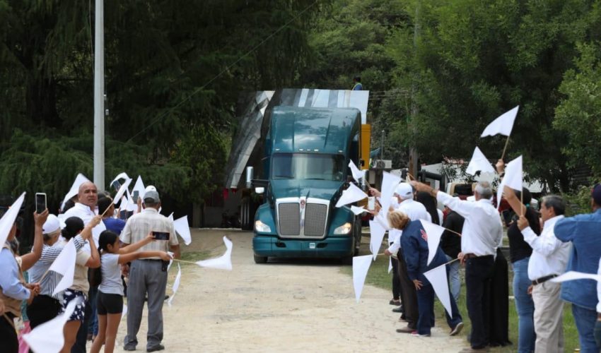 Hidalgo, Tamaulipas. – Con gran entusiasmo, fe y esperanza, habitantes del municipio de Hidalgo recibieron las primeras piezas que edificarán la monumental Virgen en El Chorrito.
