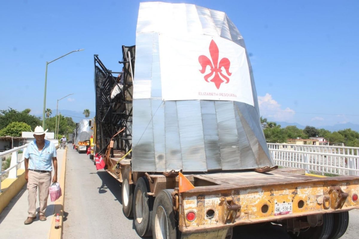 Hidalgo, Tamaulipas. – Con gran entusiasmo, fe y esperanza, habitantes del municipio de Hidalgo recibieron las primeras piezas que edificarán la monumental Virgen en El Chorrito.