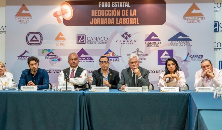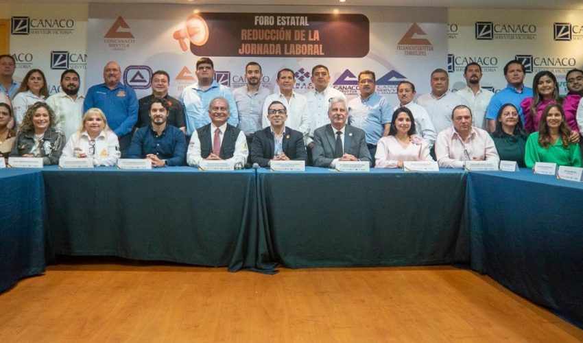 Ciudad Victoria, Tamaulipas.- El secretario del Trabajo y Previsión Social de Tamaulipas, Luis Gerardo Illoldi Reyes, participó en el Foro Estatal sobre la Reducción de la Jornada Laboral, realizado en las instalaciones de la Cámara Nacional de Comercio (Canaco) de Victoria, donde se abordaron los retos y oportunidades de esta iniciativa para el sector productivo y la fuerza laboral del estado.