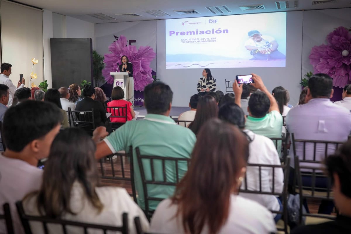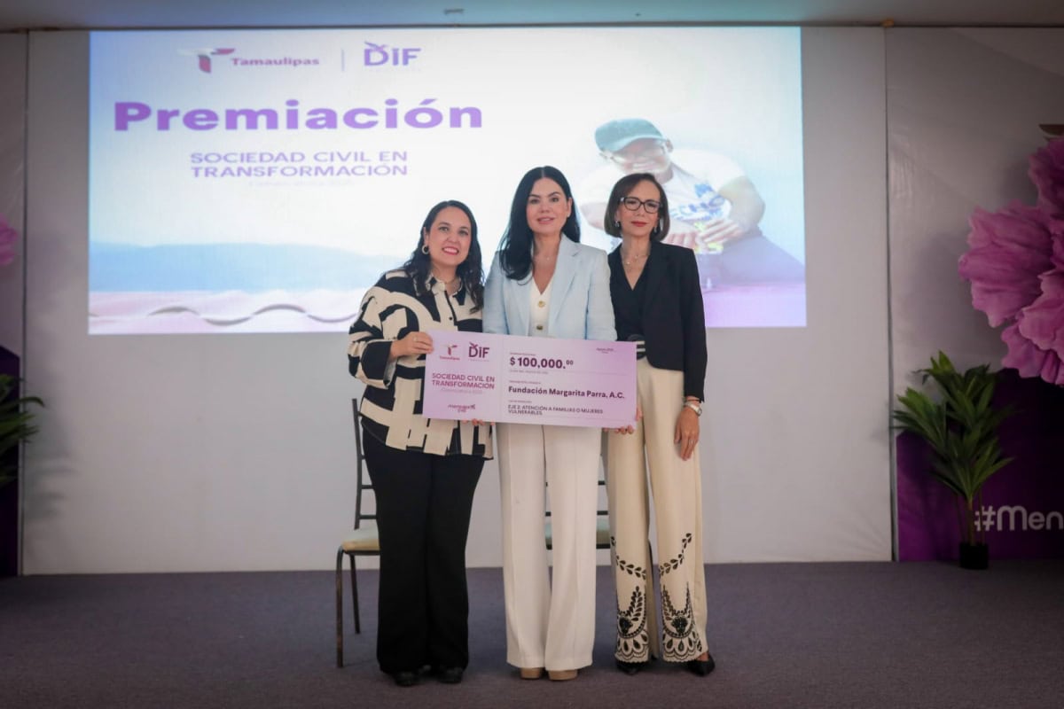 Ciudad Victoria, Tamaulipas. Como reconocimiento a instituciones que trabajan en favor de diversos grupos de la comunidad, el Sistema para el Desarrollo Integral de la Familia de Tamaulipas, presidido por la doctora María de Villarreal, llevó a cabo la premiación de los cinco proyectos ganadores de la convocatoria denominada Sociedad Civil en Transformación.