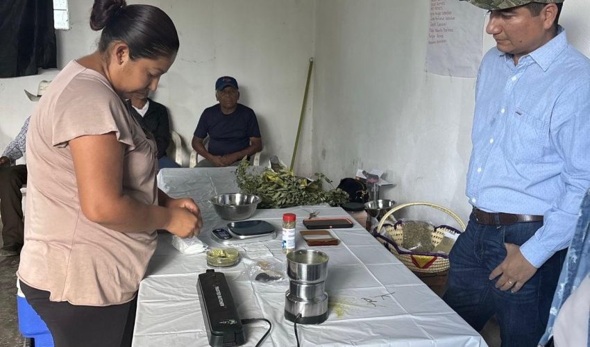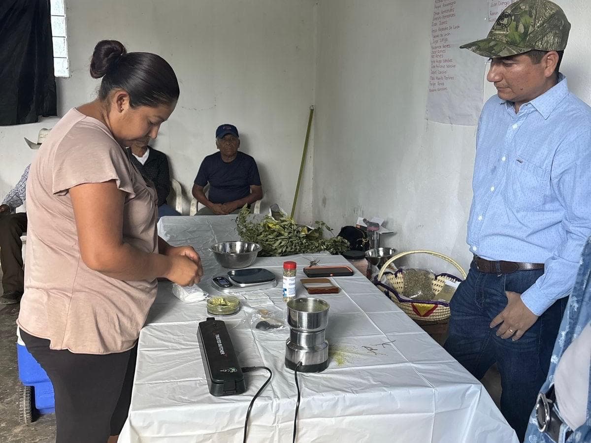 El taller incluyó prácticas como el envasado al vacío de hojas frescas de laurel, molido y picado de tallos y hojas para la elaboración de bolsitas tipo té, así como la preparación de mezclas de laurel con orégano, tomillo y sal del Himalaya para condimentos alimenticios. Estas técnicas se desarrollaron bajo estrictos lineamientos de inocuidad y buenas prácticas de higiene, asegurando un manejo con estándares de “grado alimenticio”.
