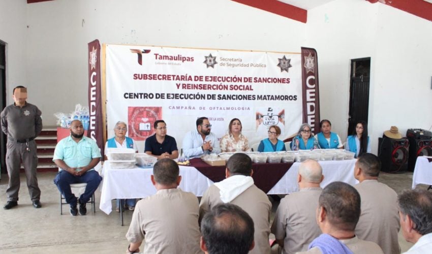 Matamoros, Tamaulipas.- Un total de 160 Personas Privadas de la Libertad (PPL) del Centro de Ejecución de Sanciones (CEDES) de Matamoros, fueron beneficiadas con exámenes de la vista y lentes con graduación, como parte de una campaña oftalmológica en coordinación con la Diócesis de Matamoros.