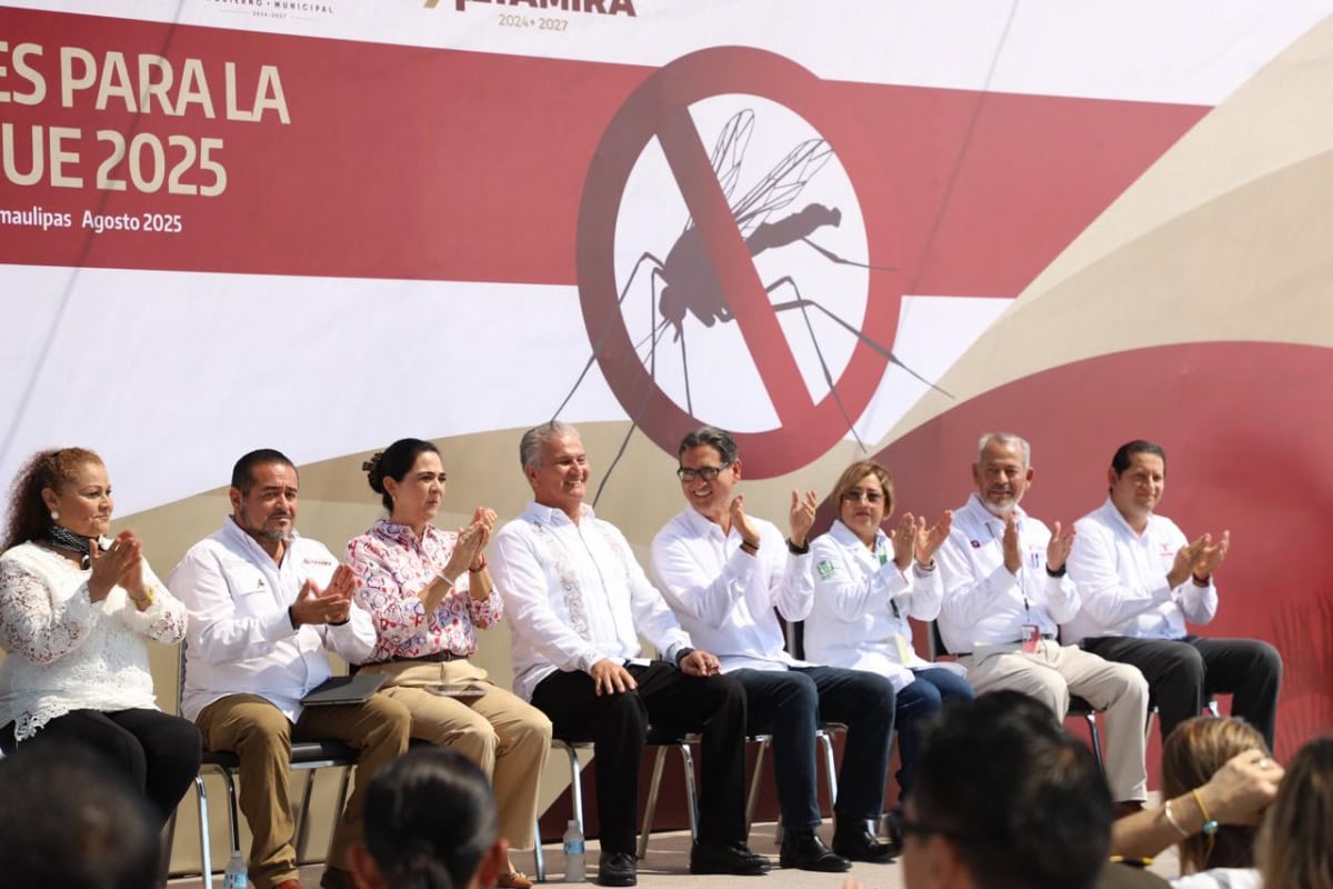 Fue en el Parque Bicentenario de esta ciudad, en donde arrancaron las actividades de esta jornada y en la cual, el secretario de Salud destacó en su discurso que en el 2024, «Tamaulipas se colocó en el lugar 11 a nivel nacional y terminamos en el lugar 23 por el número de casos registrados de dengue. En el 2025 iniciamos en el lugar 3 y actualmente nos colocamos en el número 6, por ello el trabajo intensivo y colaborativo que el gobierno del doctor Américo Villarreal Anaya y la sociedad han realizado para no bajar la guardia y prevenir esta enfermedad está dando resultado».