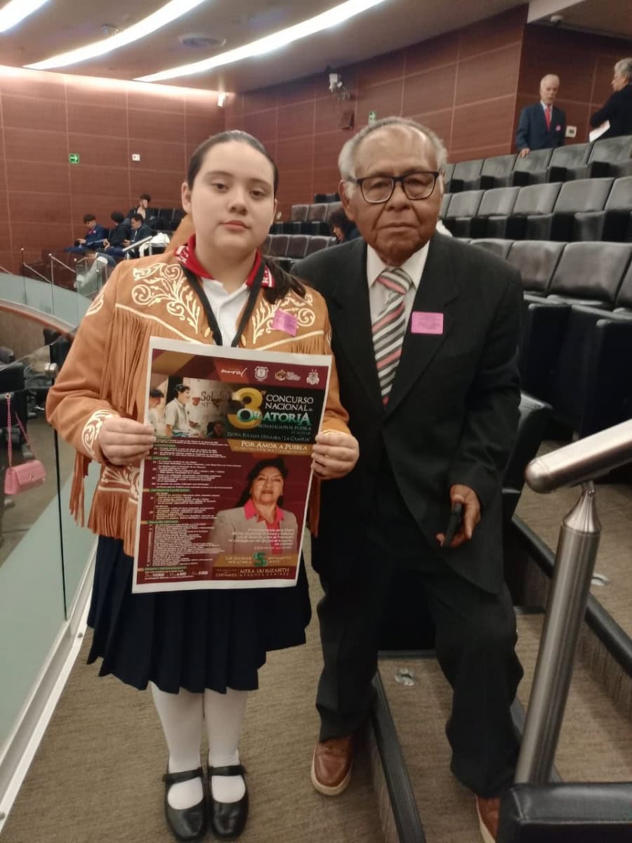 Esto le permitió representar a la entidad en el Concurso Nacional de Oratoria “Ricardo Flores Magón”, celebrado en el Senado de la República en febrero de este año, donde demostró una vez más su capacidad y fue invitada por el Gobierno del Estado de Puebla a participar en el Concurso Nacional “Homenaje a Doña Eulalia Herrera”, coronándose campeona nacional y representante de nuestro país en la nación sudamericana.
