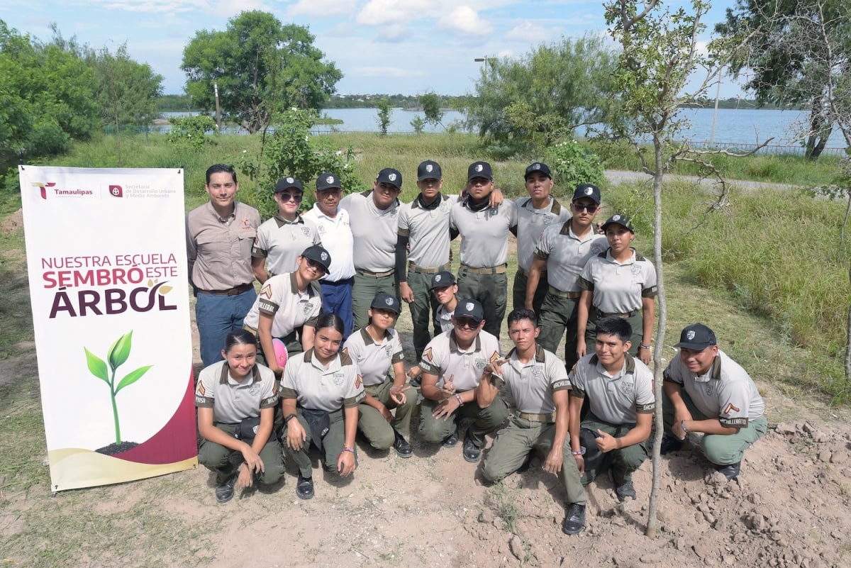 Reynosa, Tamaulipas.- Con la unión de voluntades entre los tres órdenes de gobierno, sociedad civil, instituciones educativas y legisladores locales, se llevó a cabo una jornada de reforestación en la Laguna La Escondida, un espacio emblemático de Reynosa que poco a poco recupera su esplendor.