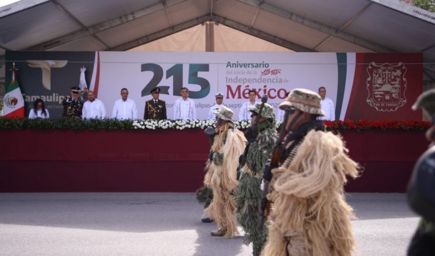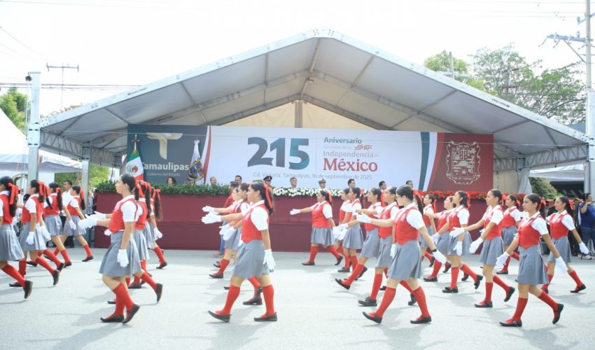 Ciudad Victoria, Tamaulipas. – La conmemoración de las Fiestas Patrias en todo Tamaulipas se celebró sin ningún incidente. «Todo fue en paz», afirmó el gobernador Américo Villarreal Anaya al término del desfile del 215 aniversario del inicio de la Independencia de México, en el que participaron más de 1,767 estudiantes y más de 1,100 elementos de las fuerzas armadas.