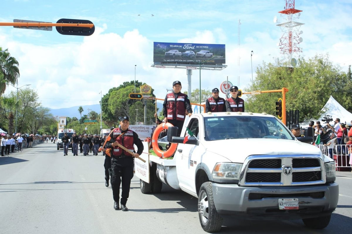 Luego de presidir la parada cívico-militar a lo largo del bulevar Tamaulipas, en la que se congregaron miles de familias, el mandatario estatal destacó el clima de paz y seguridad que prevaleció en los 43 municipios, así como la entusiasta participación de la población en todos los eventos.