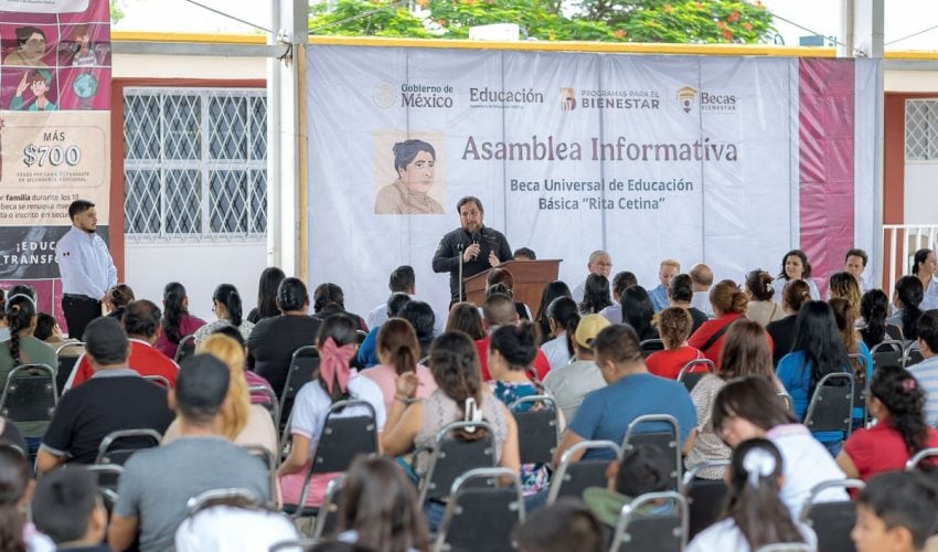 Valdez García participó en la Asamblea Informativa sobre este apoyo federal realizada en la Secundaria N.° 2 “Rafael Ramírez”, ahí expresó que cuidar la cobertura, cuidar la permanencia y cuidar la calidad son los tres mandamientos de cualquier secretario de Educación, y que la Beca “Rita Cetina” ayuda mucho para cumplir con los dos primeros.