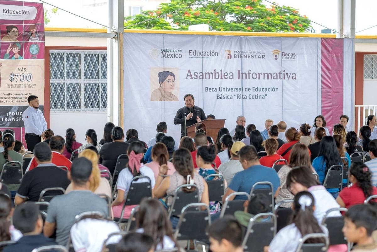 Valdez García participó en la Asamblea Informativa sobre este apoyo federal realizada en la Secundaria N.° 2 “Rafael Ramírez”, ahí expresó que cuidar la cobertura, cuidar la permanencia y cuidar la calidad son los tres mandamientos de cualquier secretario de Educación, y que la Beca “Rita Cetina” ayuda mucho para cumplir con los dos primeros.