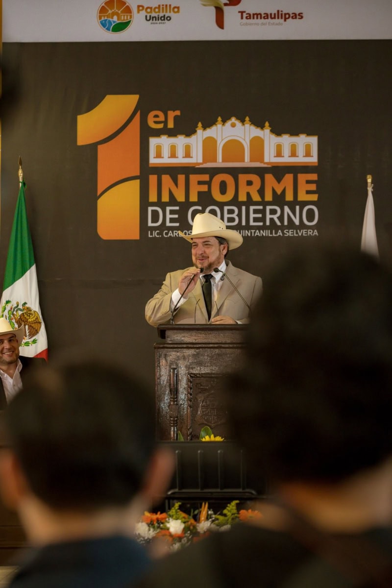 Padilla, Tamaulipas.- Al igual que México se transforma con la presidenta Claudia Sheinbaum y Tamaulipas con el gobernador Américo Villarreal, Padilla lo hace con Neto Quintanilla, afirmó Miguel Ángel Valdez García, secretario de Educación, quien asistió en representación del mandatario estatal al Primer Informe de Gobierno del alcalde de Padilla.