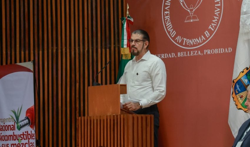 Tampico, Tamaulipas.- El titular de la Secretaría de Desarrollo Energético de Tamaulipas, Walter Julián Ángel Jiménez, junto con el director general técnico de la UAT, Roberto Campos Leal, inauguraron el primer “Encuentro Nacional de Biocombustibles y sus Mezclas” en la Universidad Autónoma de Tamaulipas, campus Tampico.