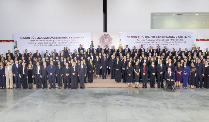 Ciudad Victoria, Tamaulipas. – En un acto inédito e histórico, que fortalece al Estado, a las instituciones, y que marca el inicio de una nueva era de legalidad y justicia en Tamaulipas, el gobernador Américo Villarreal Anaya atestiguó la toma de protesta de las y los juzgadores que integran el nuevo Poder Judicial, y que convierte a Tamaulipas en unos de los primeros estados del país que elige a sus tres Poderes, democráticamente, por voto directo y secreto del pueblo.
