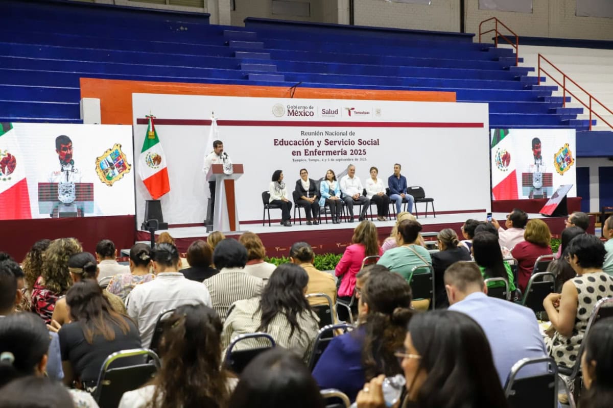Tampico, Tamaulipas.- El secretario de Salud, Vicente Joel Hernández Navarro, puso en marcha los trabajos de la Reunión Nacional de Educación y Servicio Social en Enfermería, en la que resalta el diálogo, la reflexión y la articulación entre profesionales, instituciones educativas y autoridades del sector salud.