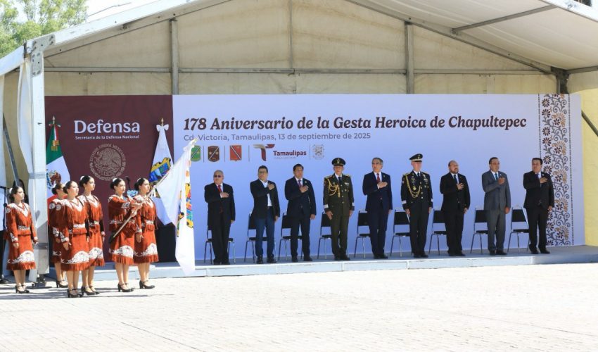 Ciudad Victoria, Tamaulipas. – Al conmemorar el 178 aniversario de la Gesta Heroica de los Niños Héroes de Chapultepec, el gobernador Américo Villarreal Anaya aseguró que este acontecimiento histórico es el más grande ejemplo de sacrificio y patriotismo, que hace posible que pasado y presente vayan de la mano para seguir escribiendo el curso de la actual transformación de México y de Tamaulipas.