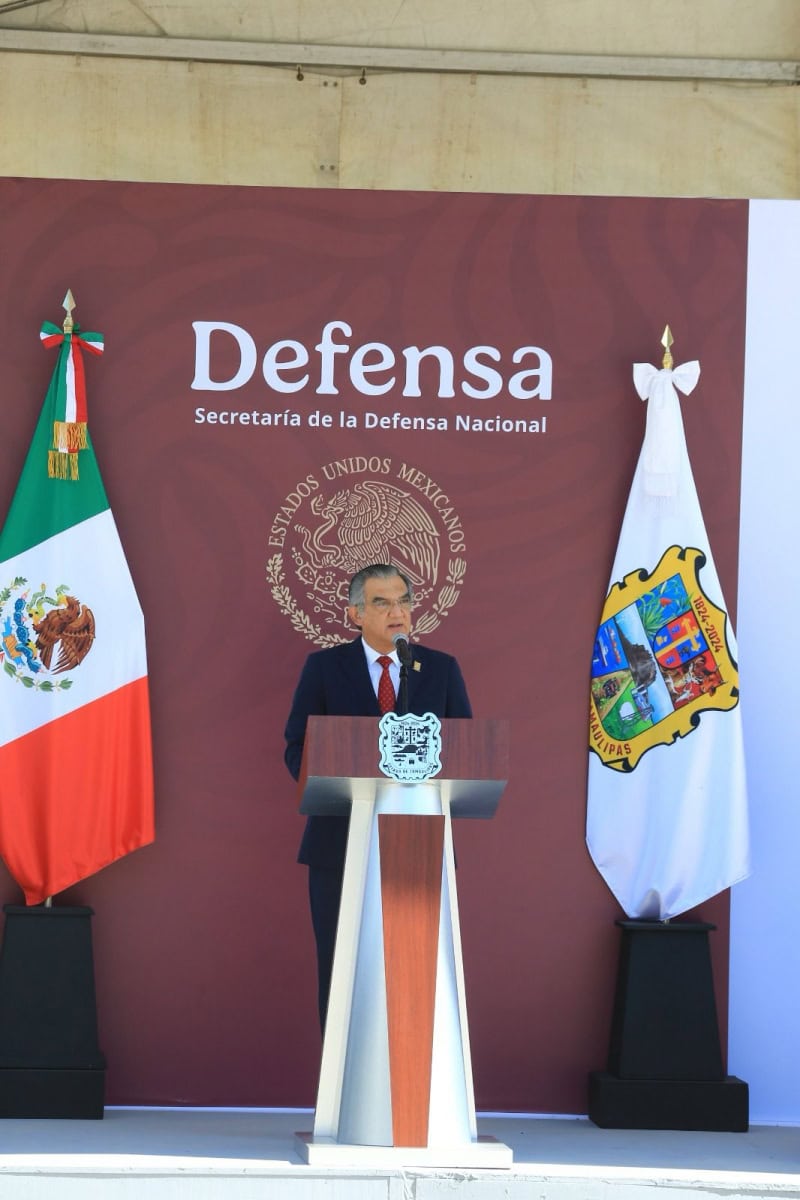Al presidir la ceremonia cívico-militar en el paseo Pedro J. Méndez, de esta capital, acompañado por el general DEM Enrique García Jaramillo, comandante de la 48 Zona Militar, y los titulares de los poderes Legislativo y Judicial, el gobernador hizo un reconocimiento a la contribución de las Fuerzas Armadas para la construcción de la paz en Tamaulipas.