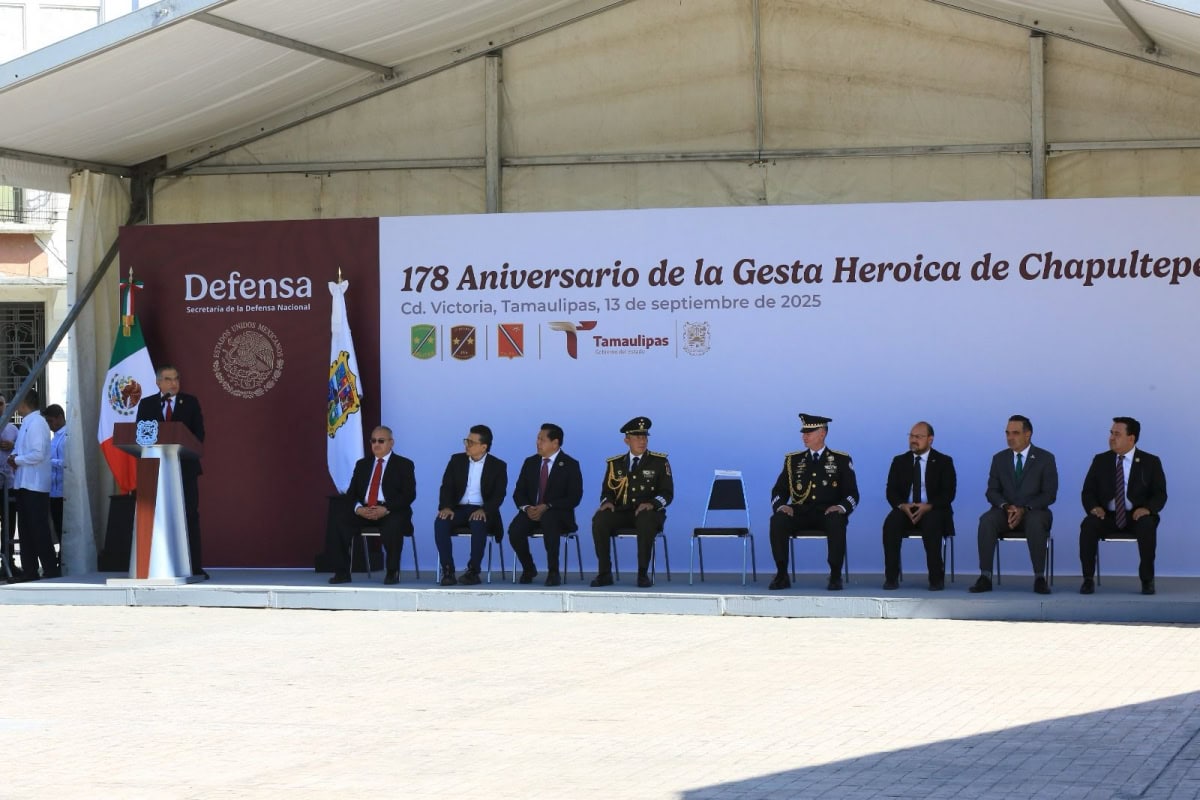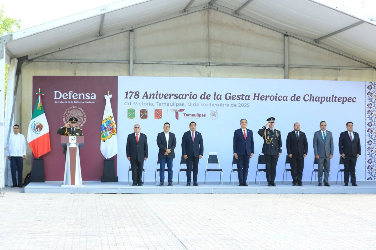 Ciudad Victoria, Tamaulipas. – Al conmemorar el 178 aniversario de la Gesta Heroica de los Niños Héroes de Chapultepec, el gobernador Américo Villarreal Anaya aseguró que este acontecimiento histórico es el más grande ejemplo de sacrificio y patriotismo, que hace posible que pasado y presente vayan de la mano para seguir escribiendo el curso de la actual transformación de México y de Tamaulipas.