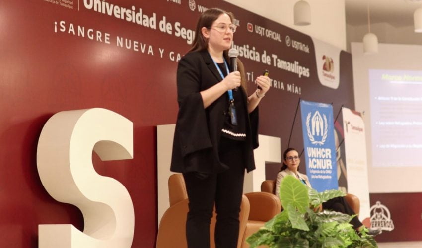 Ciudad Victoria, Tamaulipas.- El Instituto Tamaulipeco para los Migrantes, en coordinación con el Alto Comisionado de las Naciones Unidas para los Refugiados (ACNUR), promovió la magna conferencia “Protección de personas desplazadas por la fuerza y con necesidades de protección internacional en Tamaulipas”, con el objetivo de fortalecer las capacidades institucionales y ampliar el conocimiento en materia de desplazamiento forzado y protección internacional, impartida en el Auditorio de la Universidad de Seguridad y Justicia de Tamaulipas.