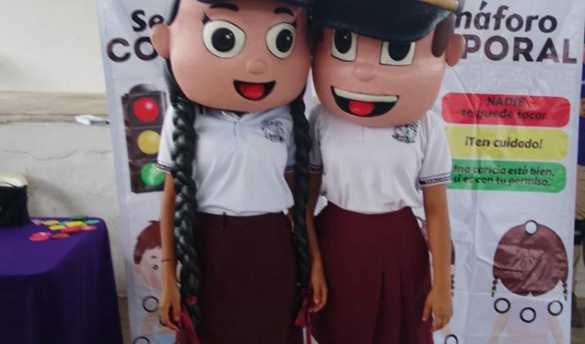 En esta escuela se instaló un módulo a través del cual se entregaron trípticos y se realizaron dinámicas como el ‘’Semáforo Corporal’’ y la ‘’Cajita de los Secretos Buenos y Malos’’.