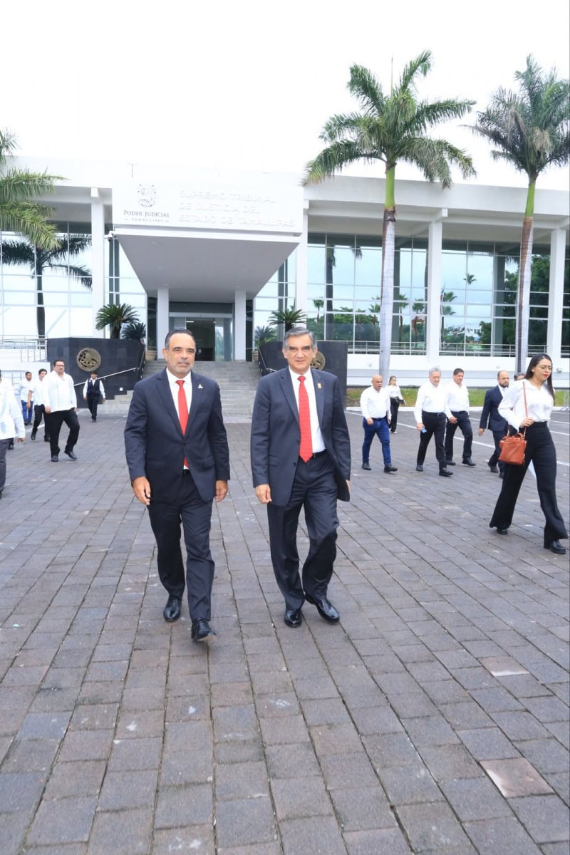 Asimismo, expresó su reconocimiento al gobernador Américo Villarreal por afianzar un estado de derecho que se construye en el respeto y la cooperación permanente de quienes integran el poder público en Tamaulipas.