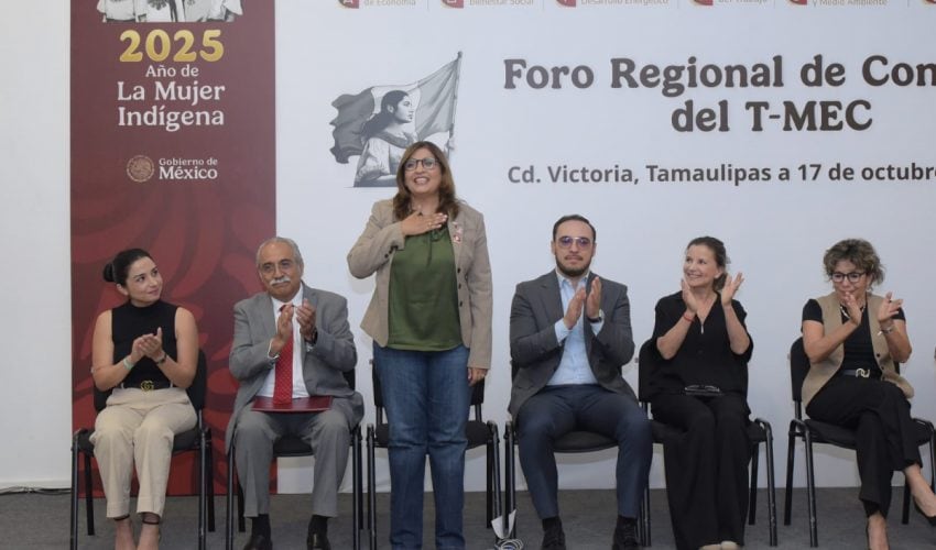 Ciudad Victoria, Tamaulipas.- En sintonía con la visión humanista y de desarrollo sostenible que impulsa la presidenta de México, Claudia Sheinbaum Pardo, y en línea con la estrategia del gobernador Américo Villarreal Anaya, el Gobierno de Tamaulipas, la Secretaría de Desarrollo Urbano y Medio Ambiente (SEDUMA), participó en el Foro Regional de Consulta del Tratado entre México, Estados Unidos y Canadá (T-MEC), realizado en el Centro Regional de Formación Docente e Investigación Educativa (CRETAM) de Ciudad Victoria.