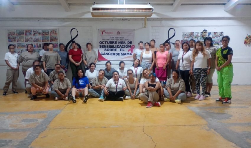 Altamira, Tamaulipas.- Con actividades que promueven el bienestar físico y mental, el Centro de Ejecución de Sanciones (CEDES) del municipio de Altamira se pintó de rosa y conmemoró la lucha contra el cáncer de mama.
