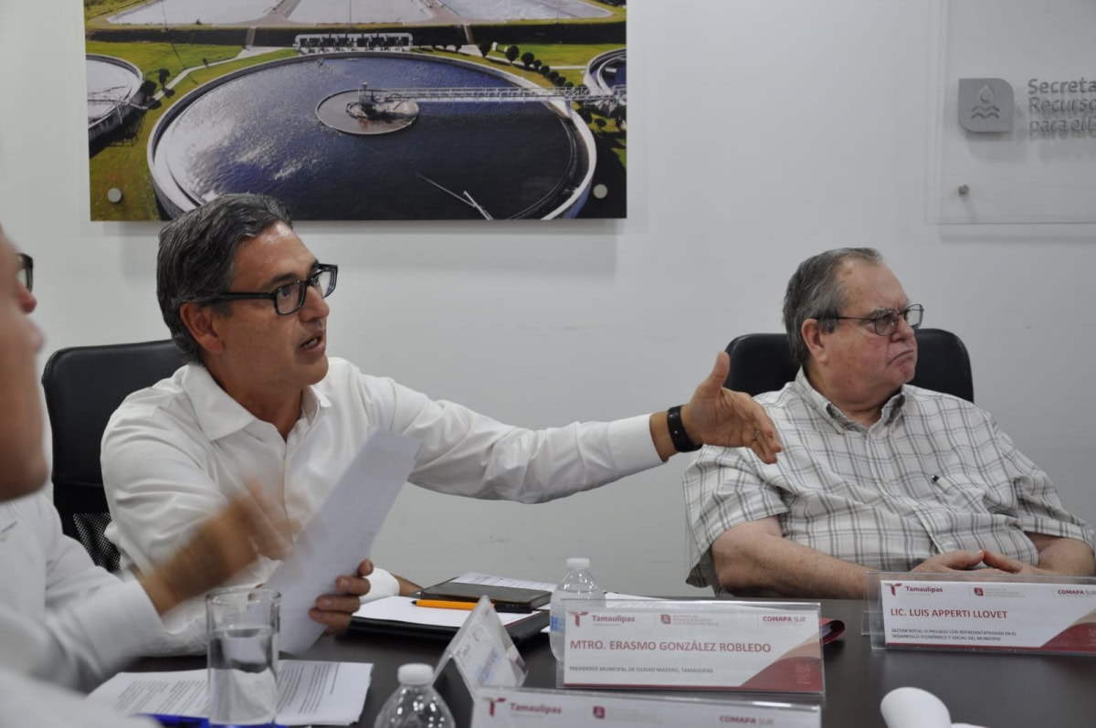 Asimismo, durante el encuentro se revisaron las estrategias para atender la problemática de los socavones en la región, reafirmando el compromiso de fortalecer la infraestructura hidráulica y garantizar un servicio eficiente y de calidad para la población del sur de Tamaulipas.