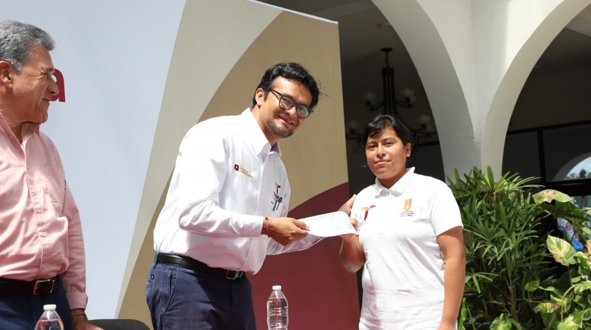 Durante su intervención, el secretario Ángel Jiménez exhortó a los beneficiarios a aprovechar esta oportunidad, prepararse con disciplina y visión de futuro, destacando que la educación es la base para transformar las condiciones de vida de las familias y la sociedad en general.