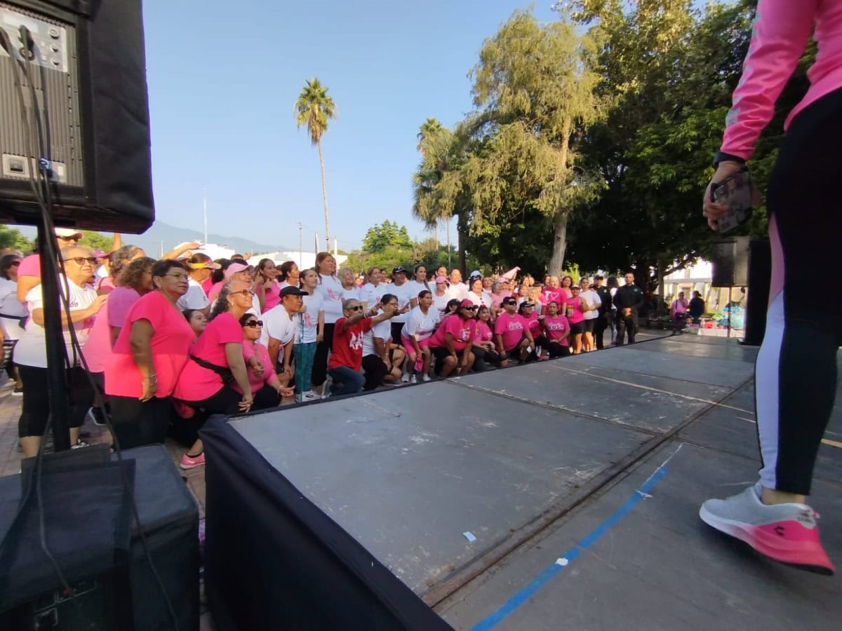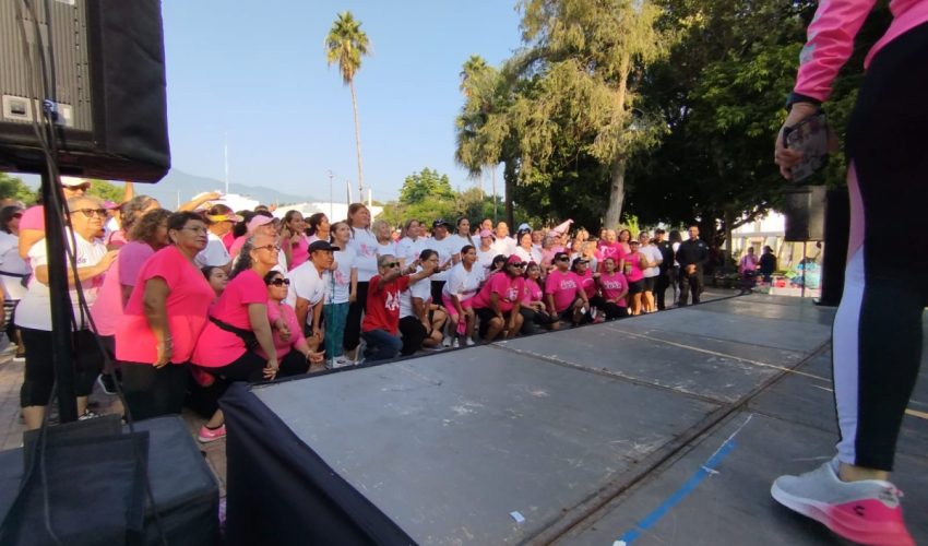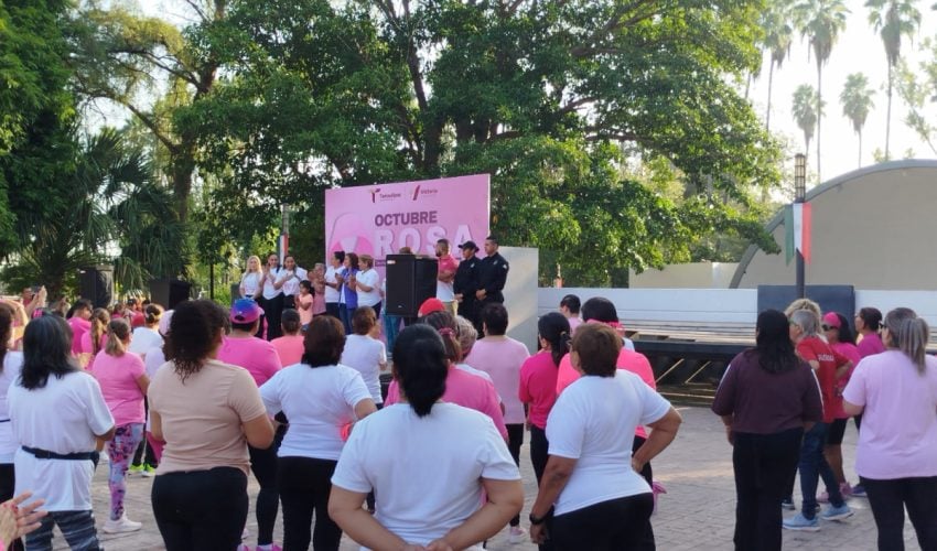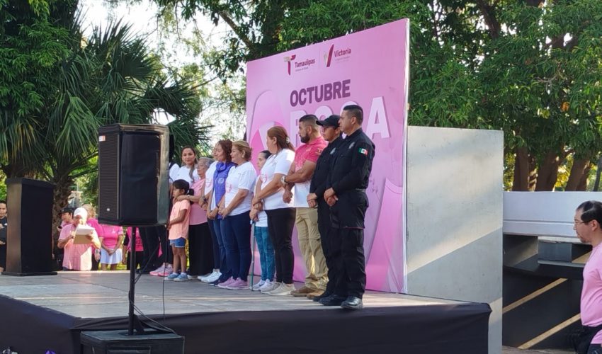 Ciudad Victoria, Tamaulipas.- Con un “Zumbatón Rosa” en Ciudad Victoria y un módulo informativo en la Brigada Rosa “Soy Poderosa” en Matamoros, personal de la Guardia Estatal de Género participó en actividades conmemorativas de la Lucha contra el Cáncer de Mama.