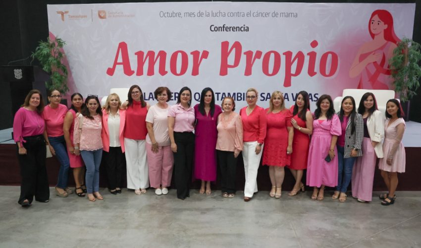 Ciudad Victoria, Tamaulipas.- En el marco del Día Mundial de la Lucha contra el Cáncer de Mama, la Secretaría de Administración, encabezada por Luisa Eugenia Manautou Galván, llevó a cabo la conferencia “Amor Propio, La Fuerza que También Salva Vidas”, impartida por la maestra Amanda Rodríguez Martínez.
