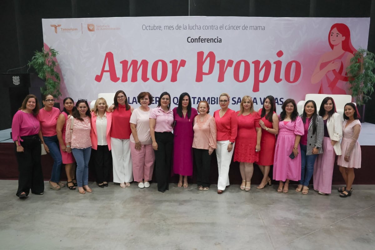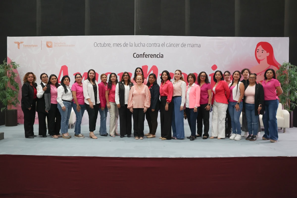 Ciudad Victoria, Tamaulipas.- En el marco del Día Mundial de la Lucha contra el Cáncer de Mama, la Secretaría de Administración, encabezada por Luisa Eugenia Manautou Galván, llevó a cabo la conferencia “Amor Propio, La Fuerza que También Salva Vidas”, impartida por la maestra Amanda Rodríguez Martínez.
