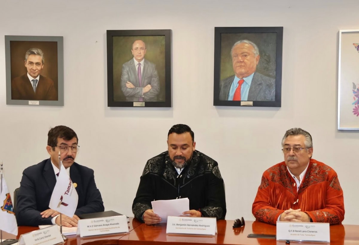 Durante el evento, el secretario de Turismo de Tamaulipas, Benjamín Hernández Rodríguez, estuvo acompañado de Ninfa Cantú Deándar, secretaria de Economía; René Lara Cisneros, presidente municipal de Tula y Dámaso Anaya Alvarado, rector de la Universidad Autónoma de Tamaulipas (UAT).