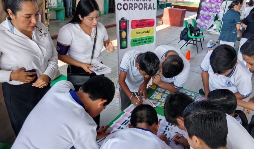 Esta actividad estuvo dirigida a estudiantes de la Escuela Secundaria General Número Cinco “Profesor Juventino Pineda y Ortega” y abordó temas relativos a la salud sexual y reproductiva como los métodos anticonceptivos, la Cartilla de los Derechos a la Protección de Salud y Seguridad Social así como la dinámica ‘’semáforo corporal’’ para prevenir violencia sexual.