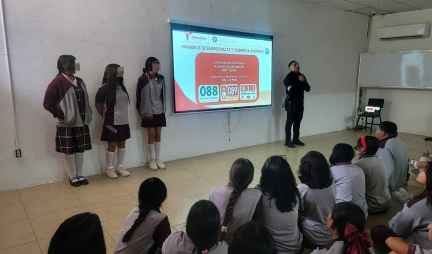 Por otro lado, en Ciudad Victoria, se brindó la plática “Bullying” a estudiantes de la Escuela Secundaria General Número Siete “Eleazar Cervantes Gómez”, misma que profundizó en su tipología y consecuencias para la víctima con la dinámica “el dado de las emociones”; asimismo, en el Centro de Desarrollo de la Comunidad del Boulevard José López Portillo se instaló un módulo informativo para prevenir embarazos que contó con la participación de personal del Área Médica de la Secretaría de Seguridad Pública de Tamaulipas (SSPT).