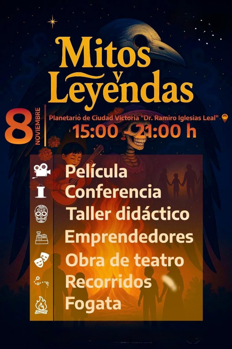 Ciudad Victoria, Tamaulipas.- Cine, teatro, talleres, recorridos, narración de mitos, leyendas y fogata bajo las estrellas te esperan el próximo sábado 8 de noviembre en el Planetario “Dr Ramiro Iglesias Leal” de la capital del estado.