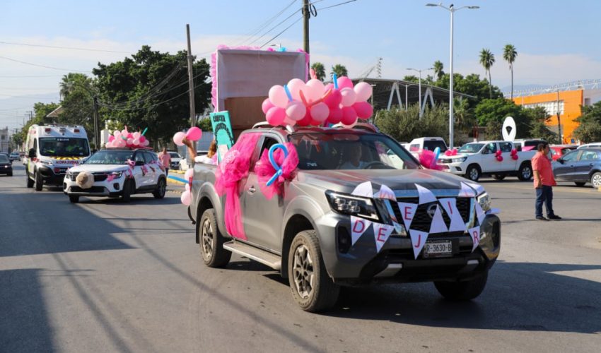 Ciudad Victoria, Tamaulipas.-Como parte de las actividades para conmemorar el mes de la Lucha contra el Cáncer de Mama, la Secretaría de Salud a través de la Unidad de Enfermería y el Distrito de Salud para el Bienestar No. 1 de Victoria (Jurisdicción Sanitaria) realizaron la “Caravana Rosa”.