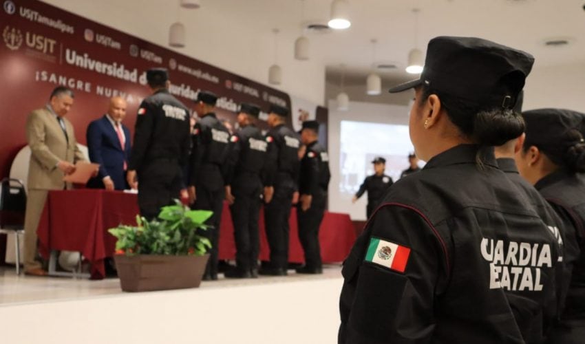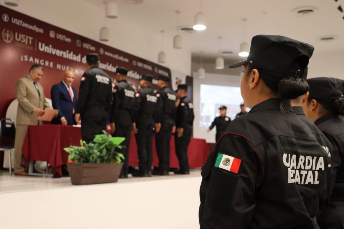 En representación del secretario de Seguridad Pública de Tamaulipas, Carlos Arturo Pancardo Escudero, el subsecretario de Operaciones de la Guardia Estatal, Enrique Dena Salgado, recibió a las y los integrantes de los grupos 25 y 26 de este curso, cuyos estudiantes destacados recibieron un reconocimiento adicional por obtener los primeros tres lugares.