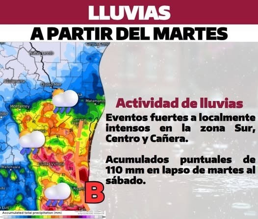 Zona de inestabilidad generará lluvias en Tamaulipas del martes al sábado: Coordinación de Protección Civil