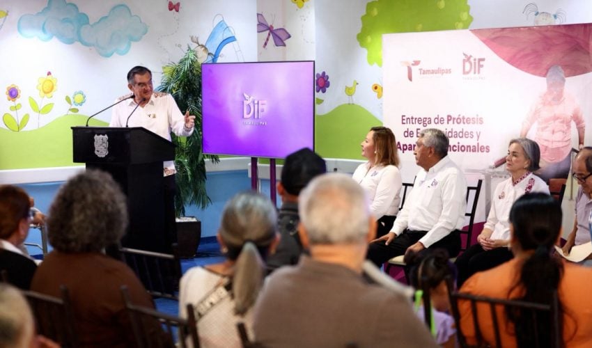 Ciudad Victoria, Tamaulipas.- Con el compromiso de mejorar la calidad de vida de las personas con discapacidad, el gobernador Américo Villarreal Anaya y la presidenta del Sistema DIF Tamaulipas, la doctora María de Villarreal, entregaron prótesis y aparatos funcionales a niñas, niños, jóvenes, adultos y personas mayores que debido a enfermedades o accidentes, perdieron alguna de sus extremidades, a fin de que logren recuperar su movilidad, autonomía y bienestar.