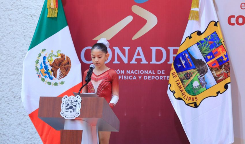 En este evento también hizo uso de la palabra la gimnasta Camila González Mata, quien agradeció al mandatario estatal por creer en ellas, a la par de asegurar que se van a seguir esforzando “por poner en alto a Tamaulipas”.