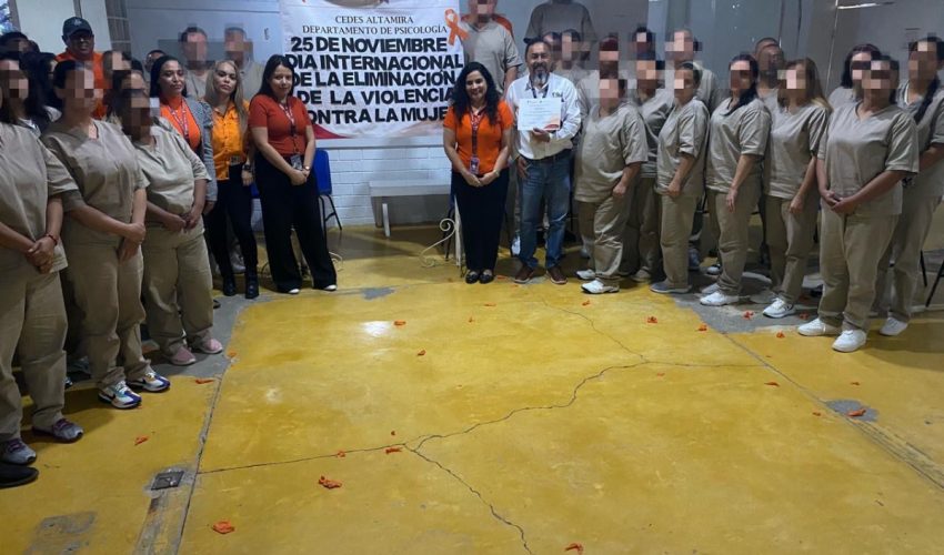 Refirmando su compromiso institucional para garantizar a la población penitenciaria femenil entornos libres de violencia, el personal del CEDES Altamira se vistió con prendas color naranja, color representativo de esta causa.