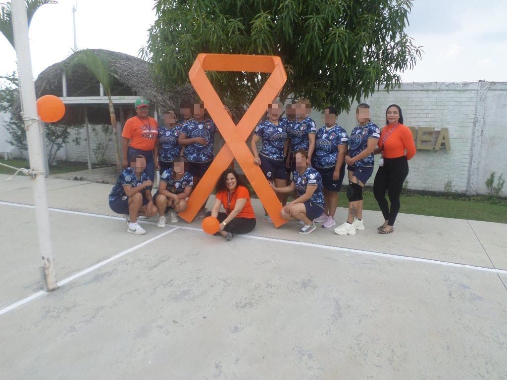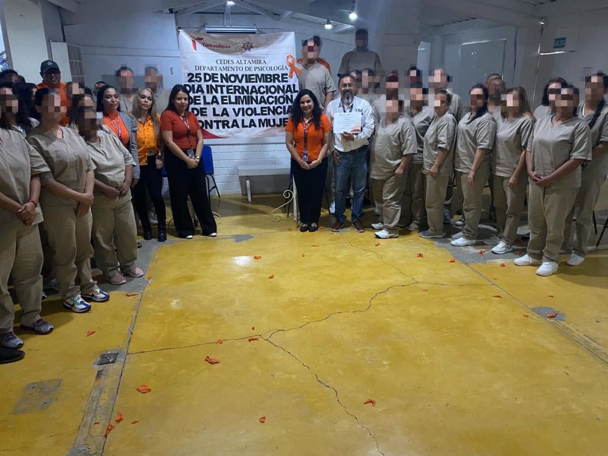 Refirmando su compromiso institucional para garantizar a la población penitenciaria femenil entornos libres de violencia, el personal del CEDES Altamira se vistió con prendas color naranja, color representativo de esta causa.