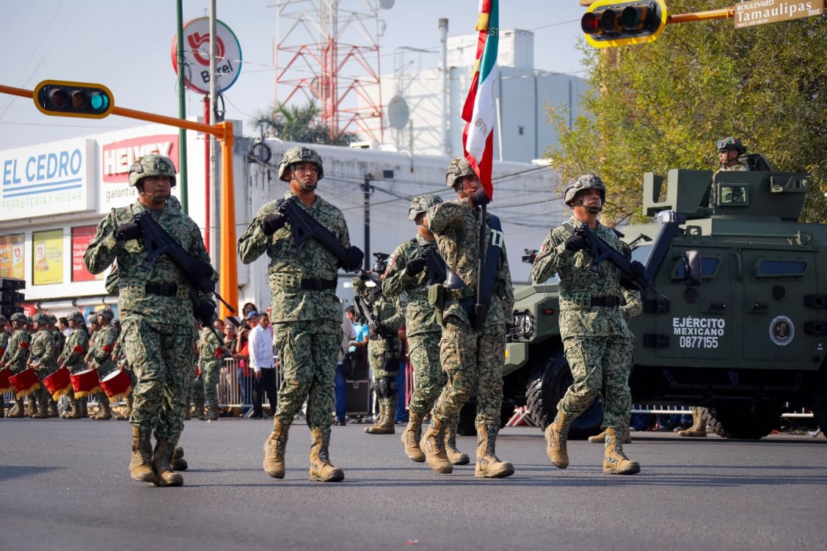 Presidida por el gobernador Américo Villarreal, la fiesta cívica transcurre en paz, con la participación de más de 3,500 estudiantes, militares y elementos de seguridad