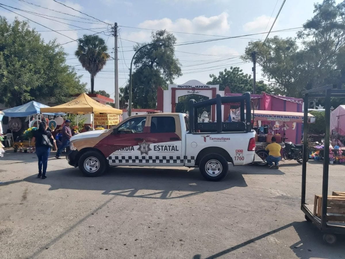 Ciudad Victoria, Tamaulipas.- Con motivo de la conmemoración del Día de Muertos, la Secretaría de Seguridad Pública de Tamaulipas (SSPT) lleva a cabo un operativo especial en los 43 municipios con la participación de más de dos mil 500 elementos de la Guardia Estatal, quienes realizan labores de vigilancia en panteones, carreteras y zonas de alta afluencia.