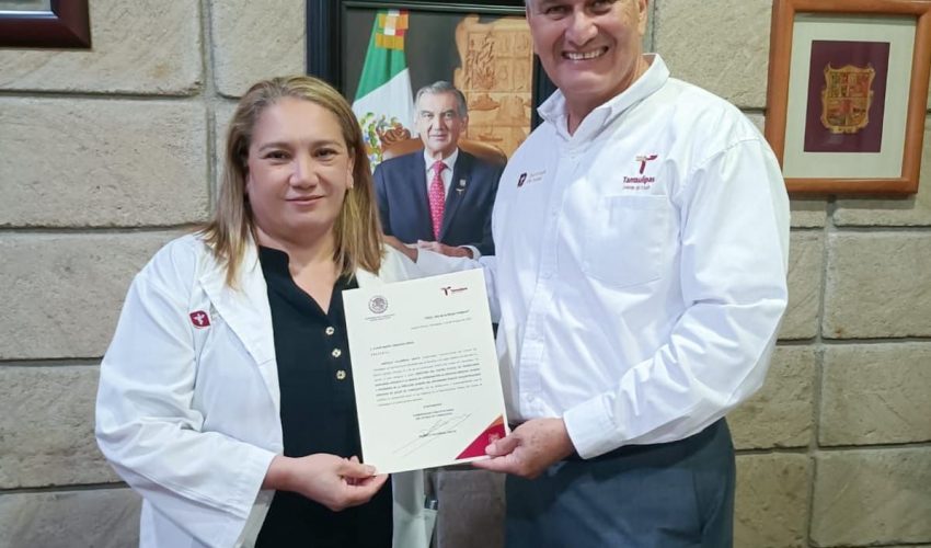Ciudad Victoria, Tamaulipas.- Con la entrada en vigor y después de las reformas a la nueva estructura orgánica, por instrucción del gobernador Américo Villarreal Anaya, el titular de la Secretaría de Salud de Tamaulipas, Vicente Joel Hernández Navarro, hizo entrega de los nombramientos a los nuevos titulares de la dependencia estatal.