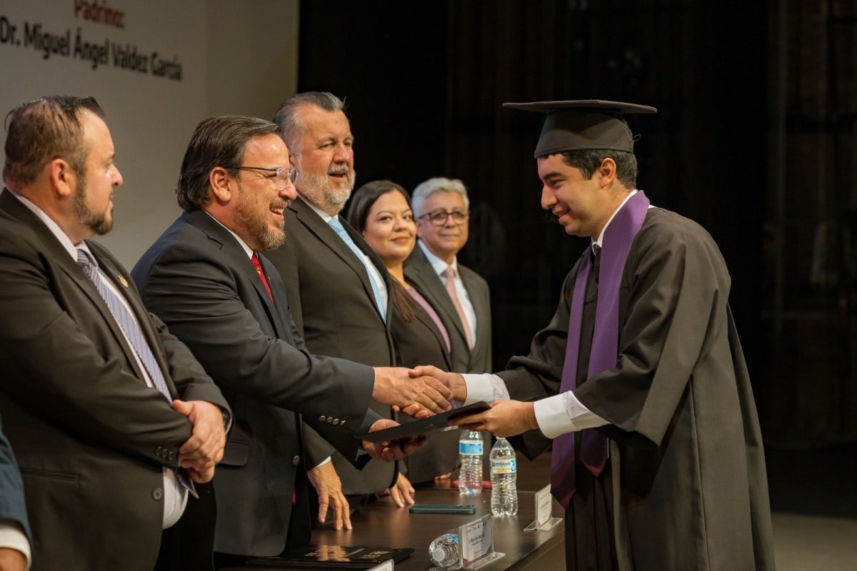 A nombre del gobernador Américo Villarreal Anaya, felicitó a las y los graduados por este logro académico y reiteró que es reflejo del trabajo, esfuerzo y compromiso que dedicaron a su educación universitaria hasta culminar.