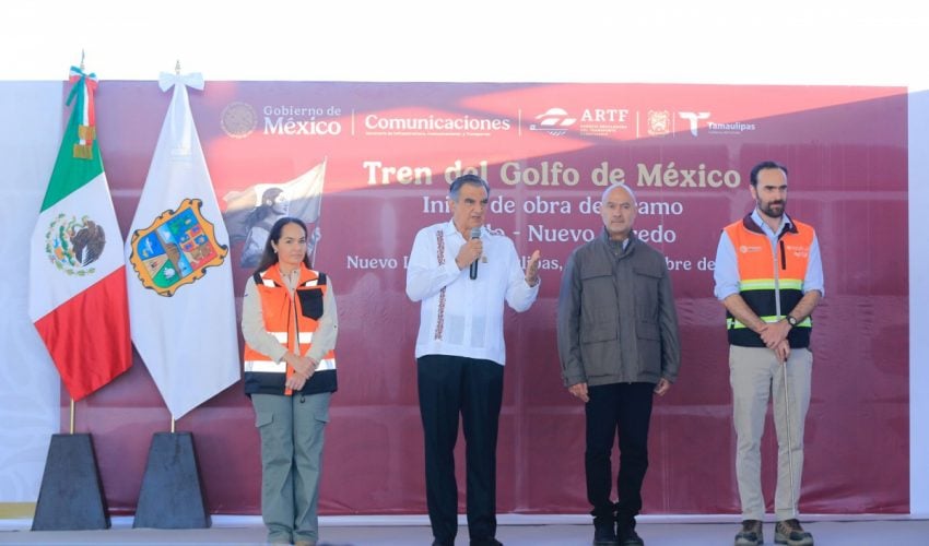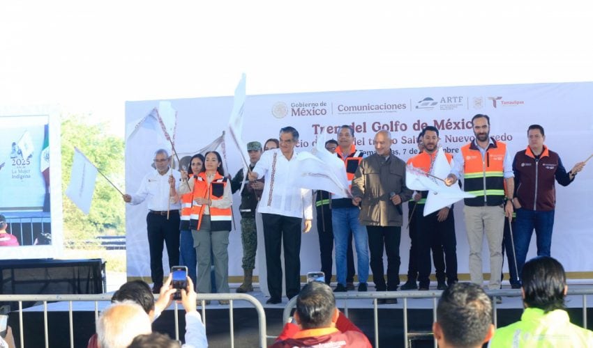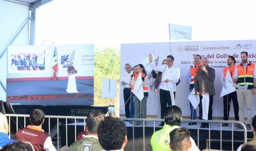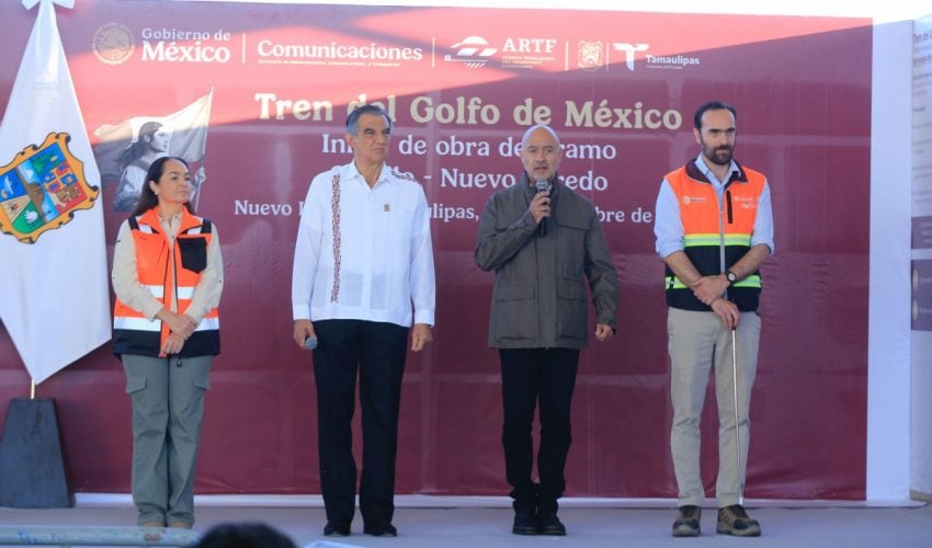 Acompañado por Jesús Antonio Esteva Medina, secretario de Infraestructura, Comunicaciones y Transportes, y Andrés Lajous Loaeza, titular de la Agencia Reguladora del Transporte Ferroviario, el mandatario tamaulipeco dio la bienvenida a esta obra de gran calado, que permitirá la generación de 10 mil 922 empleos directos y 32 mil 766 empleos indirectos.