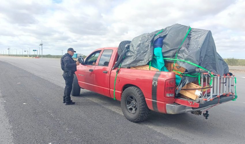 En Nuevo Laredo, los elementos reforzaron los recorridos de supervisión en la Carretera Federal 85, especialmente en el kilómetro 175 —límite con Nuevo León— y en la plaza de cobro ubicada más adelante. En este punto se brinda orientación directa a los paisanos, además de difundir los números de emergencia 911 y 089 para denuncias anónimas.